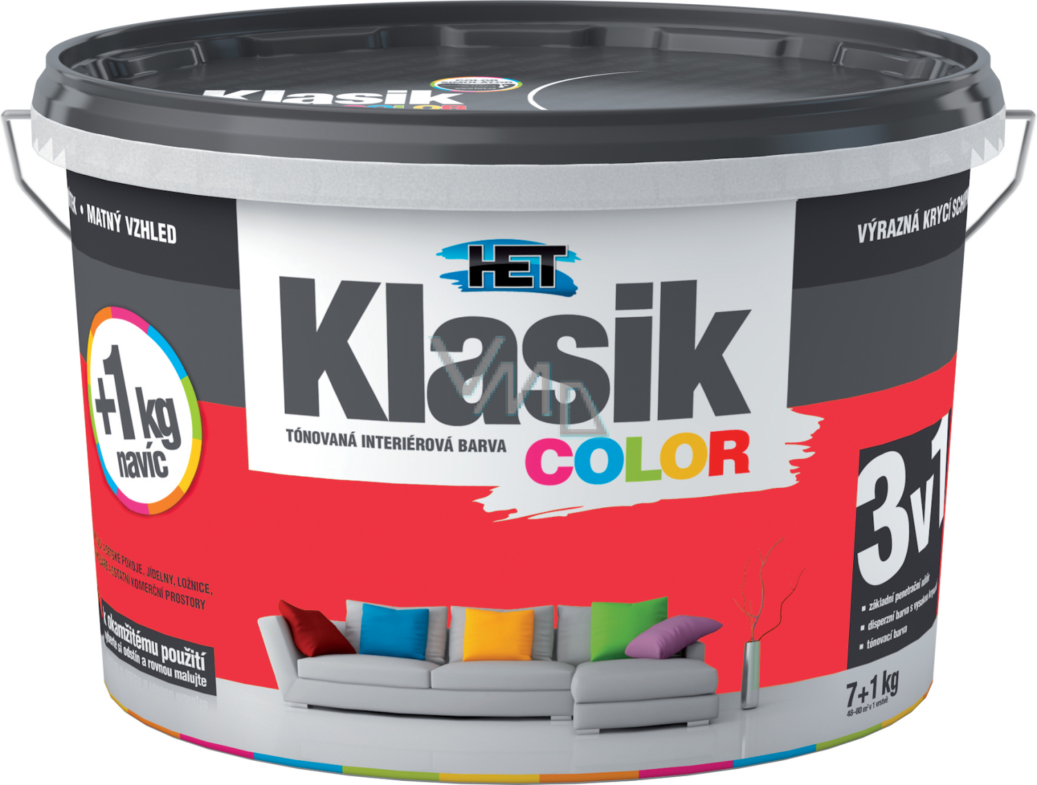Het Klasic Color malířská tónovaná disperzní otěruvzdorná barva kterou doporučujeme pro obývací a komerční prostory, dětské pokoje, jídelny, chodby, kanceláře, prodejní prostory. Vhodná k nátěrům minerálních, sádrových a sanačních omítek, zdiva, betonových panelů a monolitů, sádrokartonových, sádrovláknitých a dřevovláknitých desek, papírových tapet k tomu určených, tapet ze skelných vláken apod.
