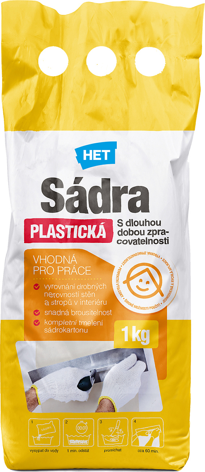 Gips mit langer Verarbeitungszeit zur Nivellierung von kleinen Unebenheiten mineralischer Untergründe (Putze, Mauerwerk, Platten usw.). Verwendung insbesondere für die Reparatur kleiner Unebenheiten mineralischer Untergründe im Innenbereich (Putze, Mauerwerk, Platten, Gipskarton usw.) zur Ausbesserung von Wänden und Decken vor dem Anstrich usw.