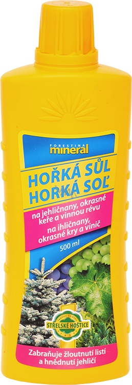 Tekutá hořká sůl je rychle působící hnojivo, které odstraňuje nedostatek hořčíku v půdě a jeho použití není časově omezeno. Je vhodné pro různé druhy plodin - okrasných rostlin, květin, ovocných stromů, drobného ovoce, zeleniny, jehličnanů atd.