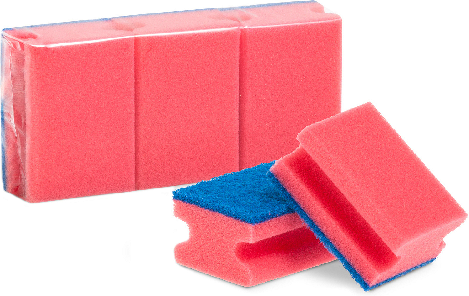 Geschirrspül-Schwämme geformt - Schwamm mit Nägelnschutz. BALhome Geschirr-Schwamm geformt 9 x 6 x 4 cm in einer Verpackung von 3 Stück. Geschirr-Schwämme mit hochqualitativem abrasivem Material und Schutzelement für Hände und Nägel, PU Geschirr-Schwamm, effektives Spülen von Tellern und Töpfen, mit blauer Stahldrahtbürste.