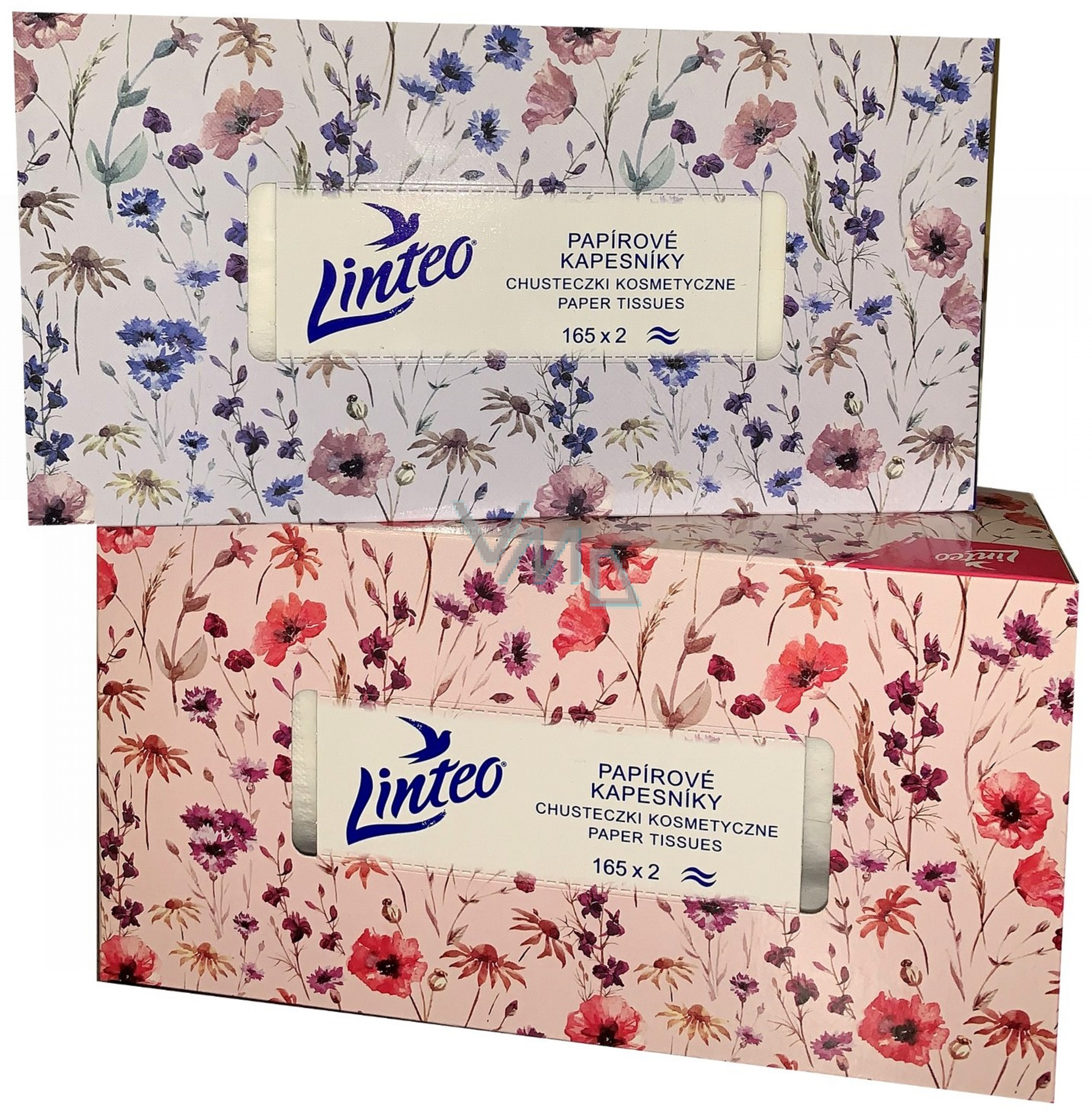 Jemné bílé dvouvrstvé papírové kapesníky Linteo vám zaručí vysokou jemnost, měkkost a pevnost. Tyto papírové kapesníčky jsou vyrobeny ze 100% celulózy. V krabičce, která má moderní zdobení, se nachází 165 kusů kapesníčků.