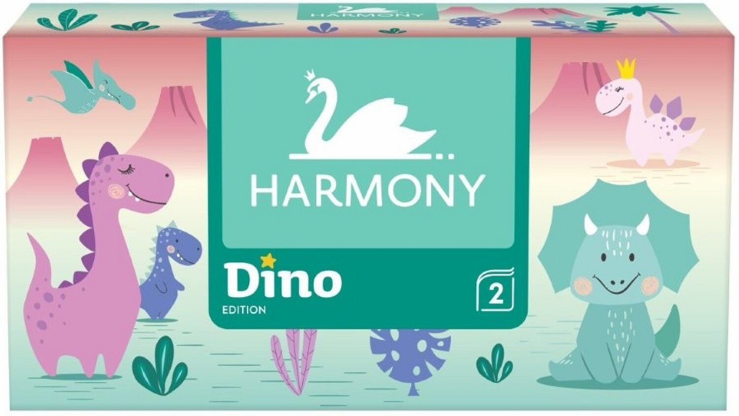 Die Papiertaschentücher HARMONY Dino gehören zu den 2-lagigen, daher reißen sie nicht so leicht. Da sie keine Parfümierung enthalten, sind sie auch für Allergiker geeignet. Die Box mit Kosmetiktüchern HARMONY enthält 150 Stück Taschentücher..