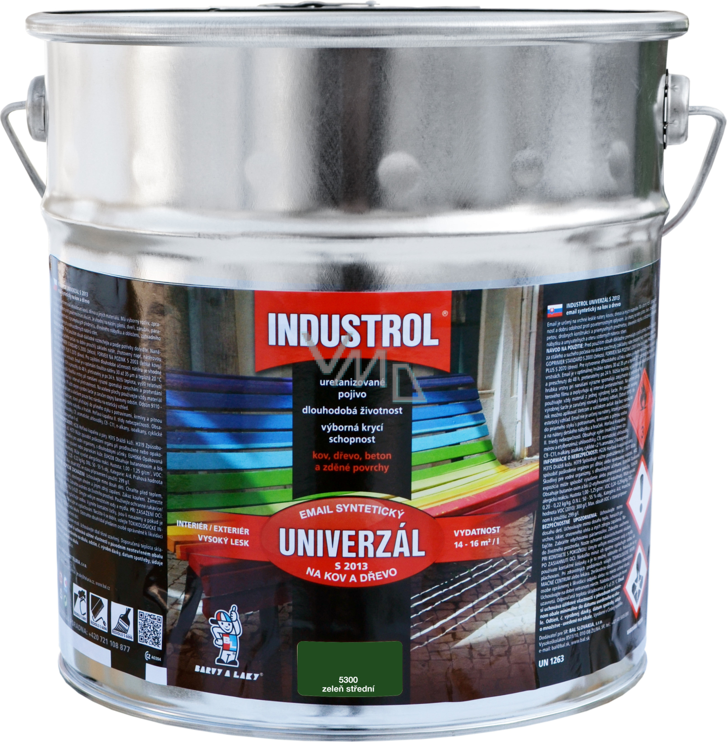 Industrol S2013 universell glänzende Deckfarbe für Metall und Holz, 5300 mittleres Grün, 9 l