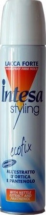 Intesa Styling Hair Spray Forte silně tužící lak na vlasy s výtažkem z kopřivy a s panthenolem. Tento kadeřnický lak na vlasy má speciální složení vynalezené k přirozené fixaci jakéhokoli typu účesu, kterému zaručí přirozený tvar a trvanlivost, díky výtažku z kopřivy a panthenolu, které jsou základními produkty v péči o vlasové vlákno. Respektuje přirozenost vlasů, aniž by je vysušil zanechává vlasy hedvábné a lesklé. Snižuje maštění vlasů. Lehce vyčesatelný hřebenem.