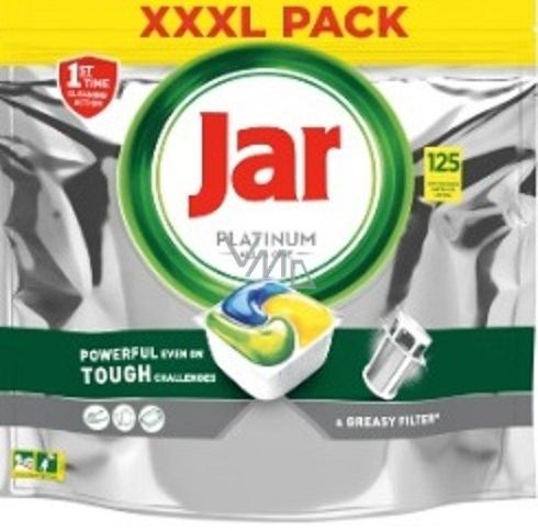 Kapsle do myčky Jar Platinum Vše v jednom jsou účinné hned při 1. umývaní a dokážou si poradit i s těmi nejodolnějšími nečistotami, aby vaše nádobí zářilo čistotou. Kapsle Jar Platinum mají čisticí sílu, díky které se nemusíte bát cokoliv uvařit. Můžete si být jistí, že vám pomohou vyčistit i mastný filtr myčky, aby vaše nádobí zářilo čistotou a myčka svěže voněla. Jar spojuje v jedné účinné kapsli tekutý i práškový prostředek na mytí nádobí. Vysoce rozpustný obal se rychle rozpouští, takže nádobí se začíná ihned umývat. A navíc se kapsle tak snadno používají. Kapsli není třeba rozbalovat a stačí ji jen vložit do dávkovacího zásobníku na mycí prostředek.