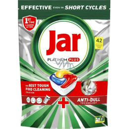 Die Jar Platinum Plus Kapseln hinterlassen das Geschirr so sauber wie neu, garantieren die besten Reinigungseffekte von Jar und helfen sogar, die im Laufe der Zeit entstehende Graufärbung zu entfernen und den ursprünglichen Glanz des Geschirrs wiederherzustellen.