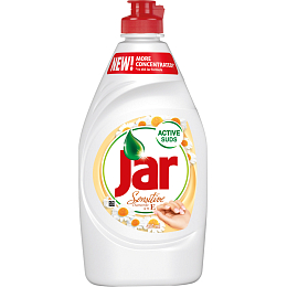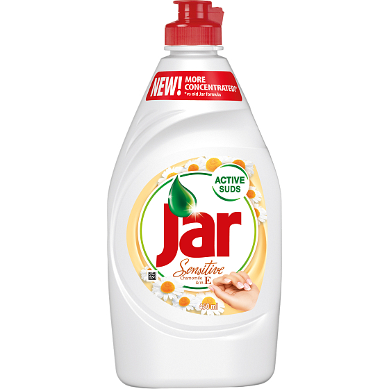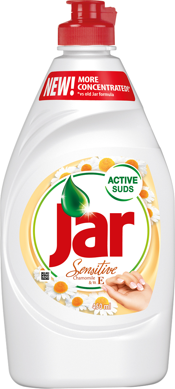 Jar na nádobí je koncentrovaný prostředek na ruční mytí nádobí s vůní heřmánku a vitaminem E. Díky účinnému složení stačí malé množství přípravku na velké množství nádobí. Má dlouhotrvající aktivní pěnu. Snadno si poradí se znečištěným a mastnotou.