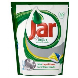 Kapsle do automatické myčky nádobí Jar Vše-v-1 mají čisticí účinky hned při 1. umývání a díky svému složení umyjí i zaschlou mastnotu. Jar kombinuje v jedné účinné kapsli tekuté a práškové složky. Kapsle jsou velmi snadno rozpustné. Rozpouští se daleko rychleji než pevné tablety, takže začínají fungovat okamžitě. A navíc se velice snadno používají. Stačí je vložit do myčky. Nemusí se rozbalovat, nevzniká žádný nepořádek. Pro ruční umývání také používejte tekutý prostředek na mytí nádobí Jar. Jeho koncentrované složení si okamžitě poradí s mastnotou a vaše nádobí získá zářivou čistotu. Čisticí účinky, kterým můžete při mytí nádobí vždy důvěřovat.