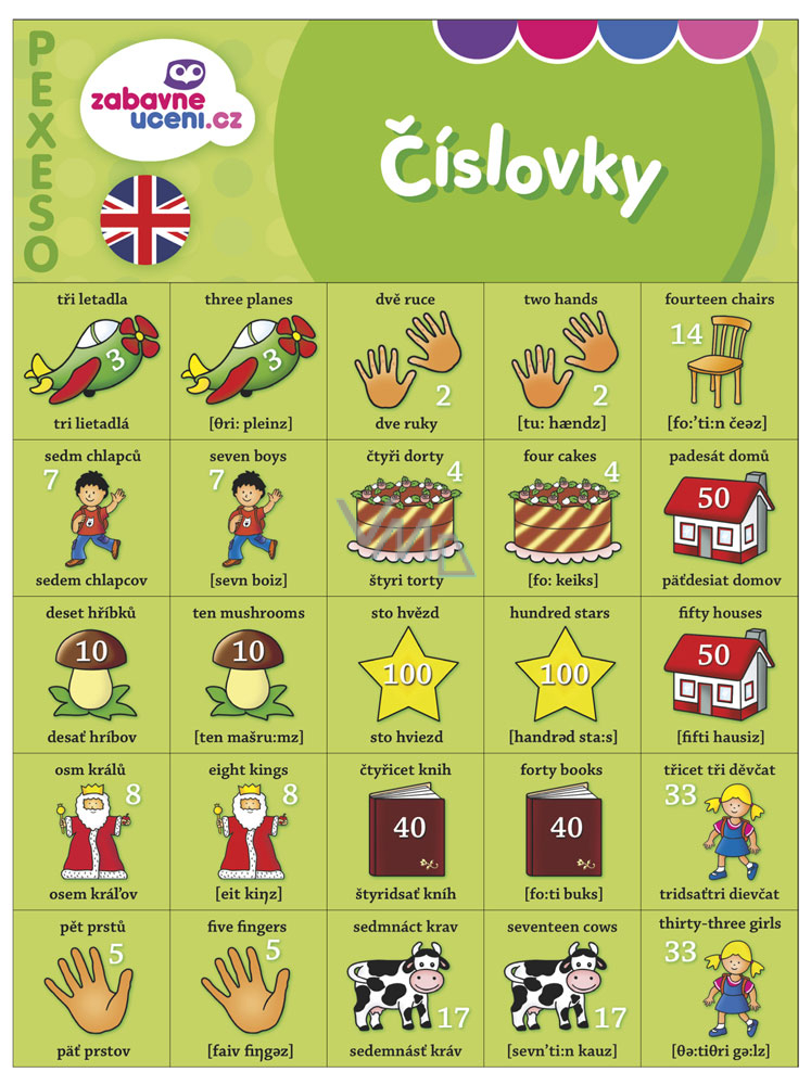 Naučí 27 slovíček + 27 číslovek.
