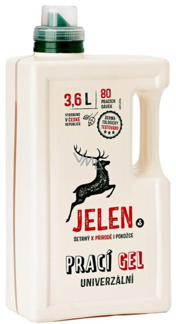 Prací gel JELEN je univerzálním pracím prostředkem, pomocí kterého dokonale vyperete bílé i barevné prádlo. Díky receptuře založené na jádrovém mýdle je gel vysoce účinný a současně šetrný nejen k pokožce, ale rovněž k přírodě. Jeho použití je velmi snadné, díky tekutému složení se velmi dobře rozpouští a neusazuje v pračce. Je vhodný nejen pro praní v automatické pračce, ale stejně tak je velmi účinným pomocníkem při ručním praní. Prací gel zajistí, že vaše prádlo bude perfektně čisté a zářivé.