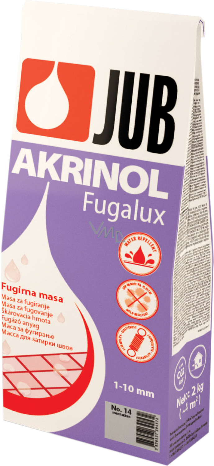 AKRINOL FUGALUX 1 – 10 je prášková směs, vyrobená na základě cementu, určená ke spárování vnitřních a venkovních stěnových a podlahových obkladů a dlažeb (keramické dlaždice a klinker různých druhů, skleněné a jiné mozaiky, dlaždice z přírodního i umělého kamene) v obytných, firemních i veřejných objektech. Je vhodná pro spáry šířky a hloubky do 10 mm, a to i pro dlažby v prostorech s podlahovým vytápěním. Vyznačuje se vysokou odolností proti opotřebení, dobrou vodoodpudivostí s výrazným „drop efektem“ a dlouhodobou odolností proti napadení plísněmi.
