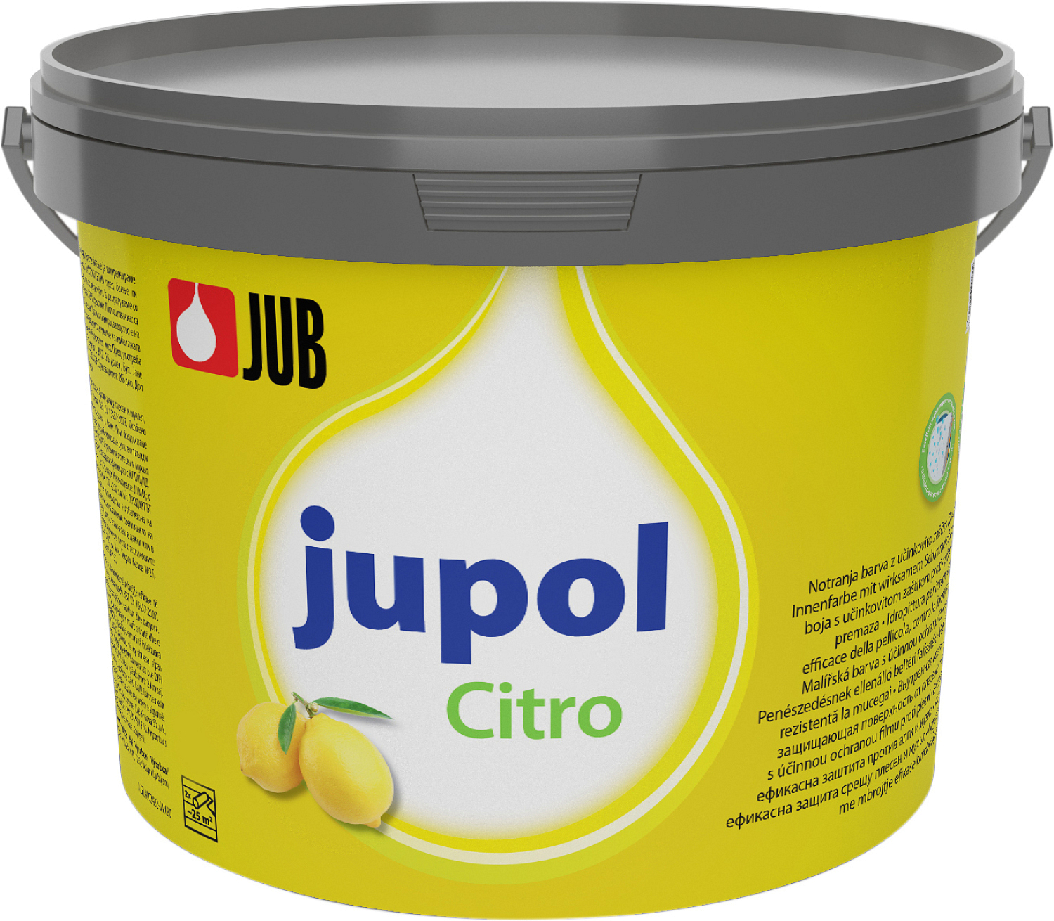 JUPOL Citro zeichnet sich durch einen außergewöhnlich niedrigen Gehalt an flüchtigen organischen Verbindungen aus und enthält keine Schwermetalle. Während des Auftrags und Trocknens duftet es angenehm nach Zitrone. Es lässt sich leicht auftragen und ist in vielen pastellfarbenen Farbtönen erhältlich. Selbst Oberflächen, die häufig mit Kondensat benetzt sind, sind nach dem Anstrich für einen relativ langen Zeitraum gegen den Befall durch die häufigsten Schimmelarten beständig. Die Beständigkeit der Farbe kann weiter erhöht werden, indem 5 bis 7,5 % (50 bis 75 ml/l) JUBOCID hinzugefügt werden. Der farbige Film ist hochdiffusionsoffen und widerstandsfähig gegen Abnutzung im Trockenen (beim Abwaschen mit einem nassen Tuch oder Schwamm wird es weich und beschädigt!).