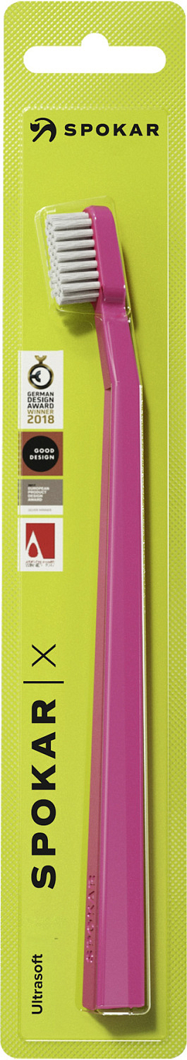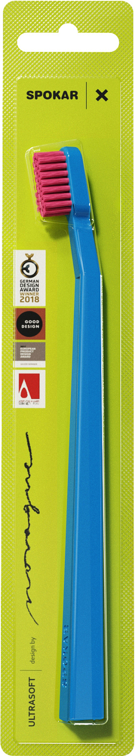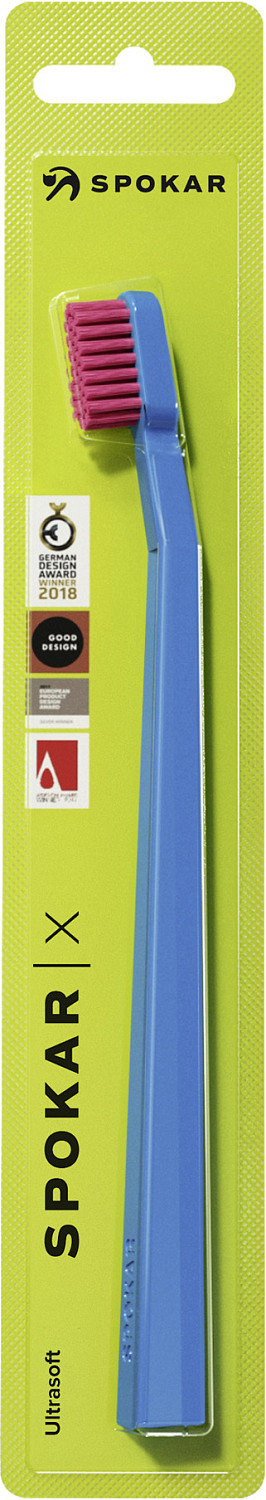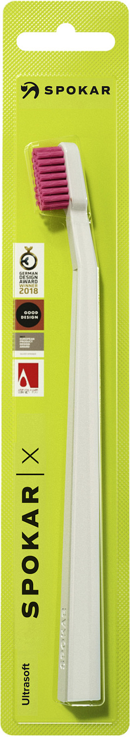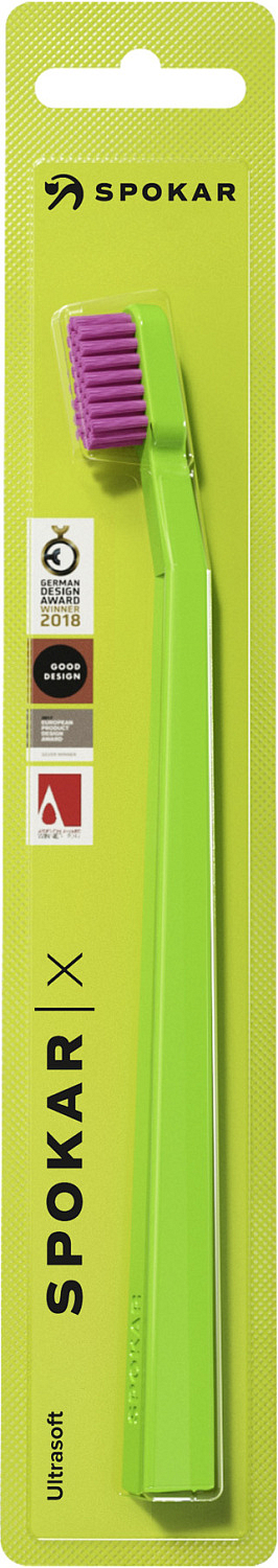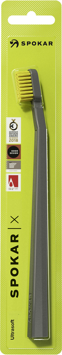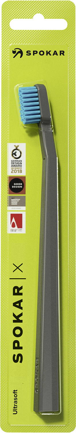 Die neue Premiumreihe von Zahnbürsten SPOKAR wurde auf der Grundlage aktueller Empfehlungen von zahnmedizinischen Fachleuten entwickelt. Das einzigartige Design ist das Ergebnis der Suche nach einer optimalen Handhabung der Bürste, um eine einfache Bedienung und perfekte Reinigung der Zähne zu gewährleisten. Der Designer dieser Bürste ist der führende tschechische Designer MgA. Petr Novague. Für das Design der Bürste hat er bereits mehrere internationale Auszeichnungen erhalten. Der Bürstenkopf ist sehr dicht mit hochwertigen, feinen Fasern mit abgerundeten Enden bestückt. Diese Fasern entfernen Zahnbelag effektiv und sind sanft zum Zahnfleisch.