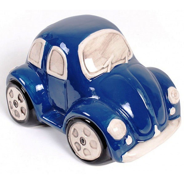 Keramická kasička ve tvaru autíčka potěší nejednoho šetřílka.