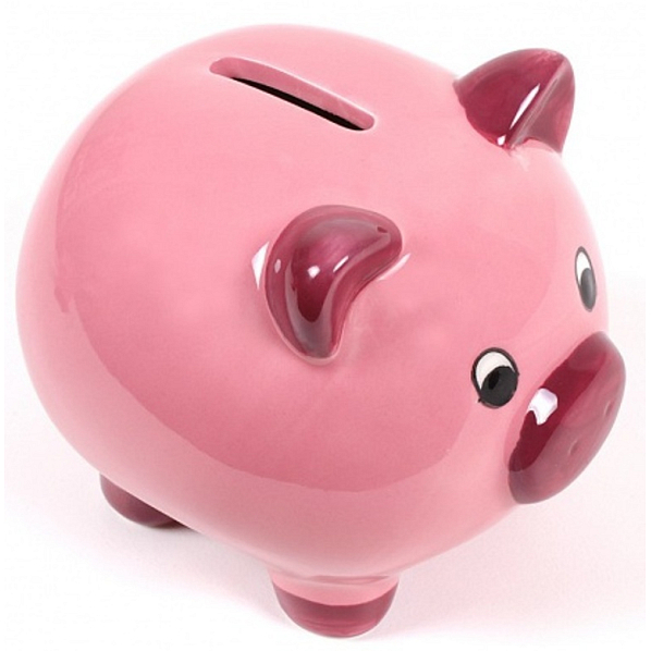 Keramická kasička ve tvaru prasátka potěší nejednoho šetřílka.