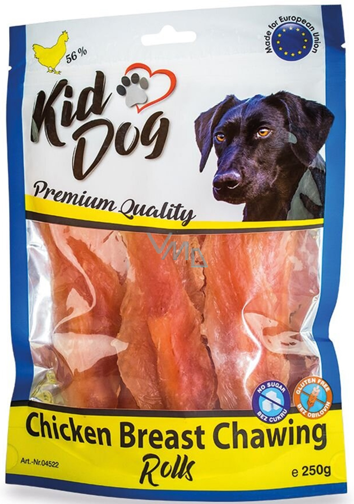 KidDog Hühnerbrust Chawing Rolls Hühnerbrust am Büffelstab, weicher Fleischgenuss für Hunde 250 g