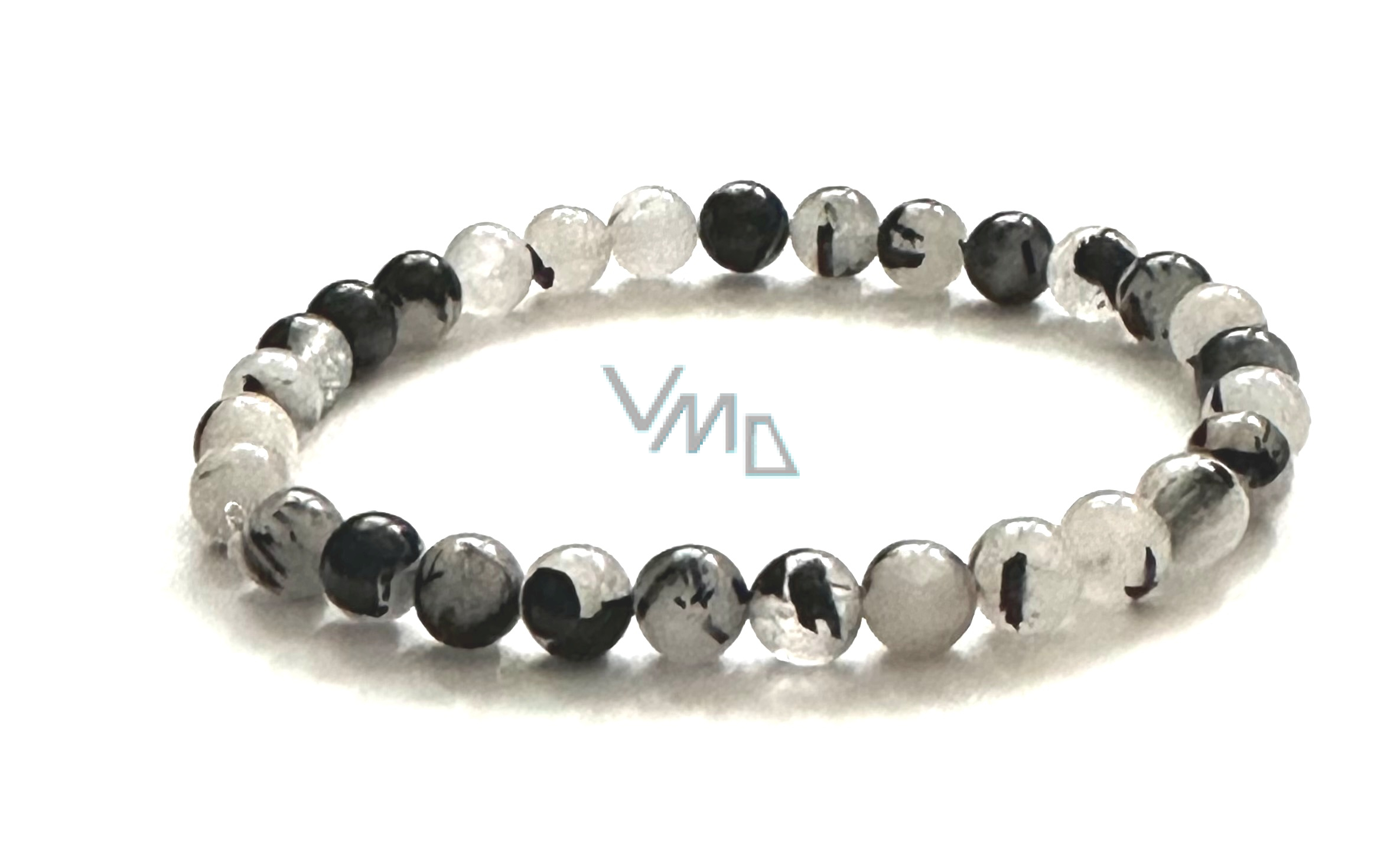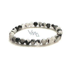 Kristall mit Turmalin Armband elastisch Naturstein, Kugel 6 mm / 16 - 17 cm, Stein Steine