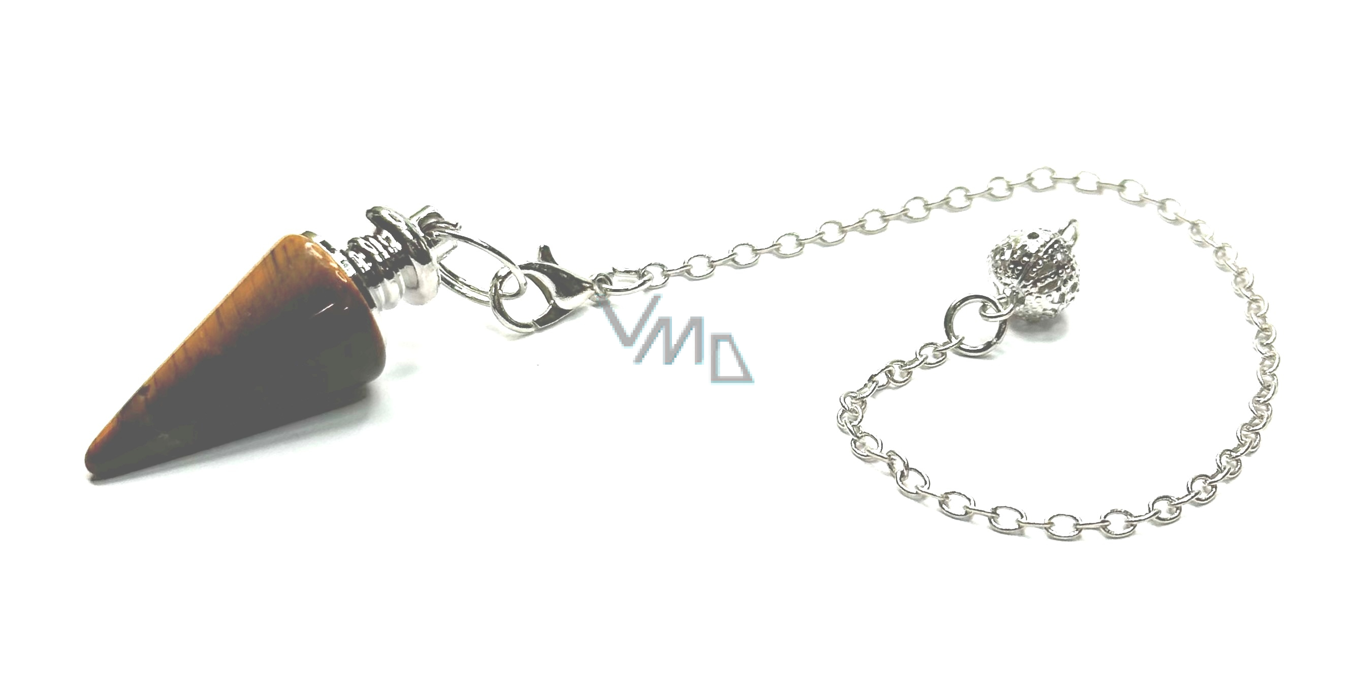 Tigerauge Pendel Naturstein 3,5 cm + Kette mit Kugel 18 cm, Stein der Sonne und Erde, bringt Glück und Reichtum