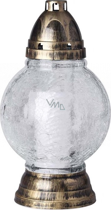 Lampa hřbitovní skleněná koule praskaná výška 28 cm obsahuje svíčku v tubě 130 g doba hoření 5Mehr lesen