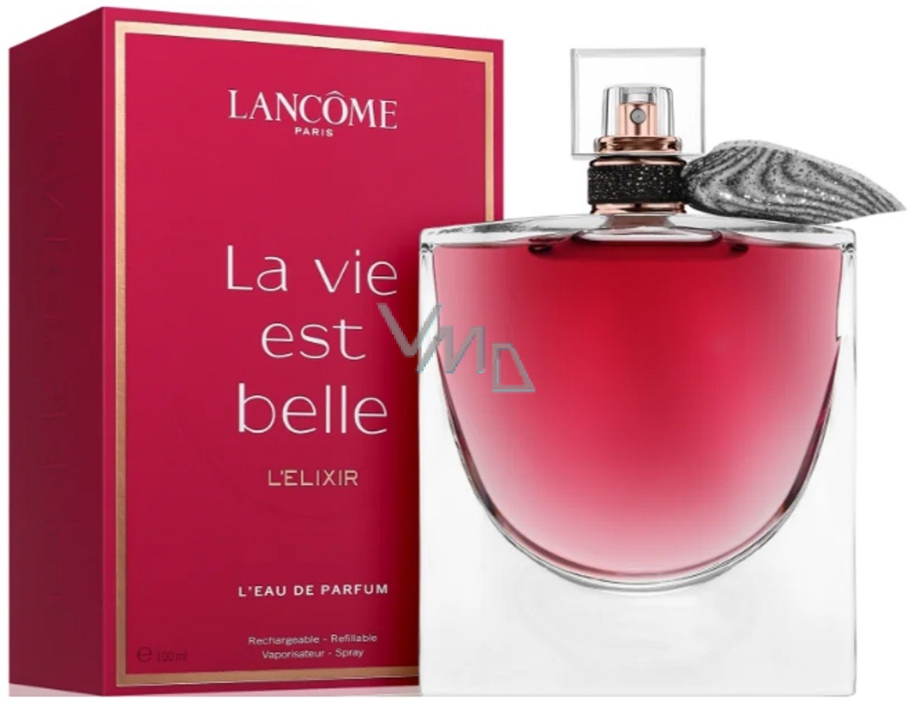 La Vie est Belle L'Elixir od Lancôme je květinová, ovocná, gurmánská vůně navržená tak, aby vyvolala hluboký pocit osvobození a sebevědomí. Tato parfémovaná voda se otevírá jiskřivými tóny malinového akordu a kalábrijského bergamotu, které vedou k srdci z absolutu z lístků fialky a absolutu z růžového srdce. Základ obsahuje bohatou vůni absolutního kakaového másla, koženého akordu a virginského cedrového dřeva.