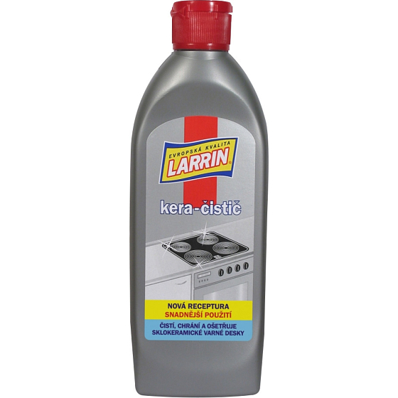 Larrin Kera-Reiniger 200 ml für Keramikkochfelder hat eine neue Rezeptur für einfachere Anwendung, reinigt gründlich, schützt vor Beschädigungen und pflegt. Das Produkt ist eine wässrige Lösung aus nichtionischen und anionischen Tensiden, organischen Säuren sowie abrasiven, polierenden und schützenden Zusatzstoffen. Regelmäßige Anwendung erleichtert die Pflege und hält das Kochfeld immer wie neu. Der Kera-Reiniger hinterlässt einen schützenden Film und strahlenden Glanz.