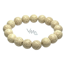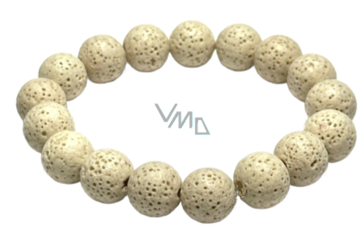 Láva krémová s královskou mantrou Óm, náramek elastický přírodní kámen, kulička 12 mm / 16 - 17 cm, zrozen ze čtyř živlů