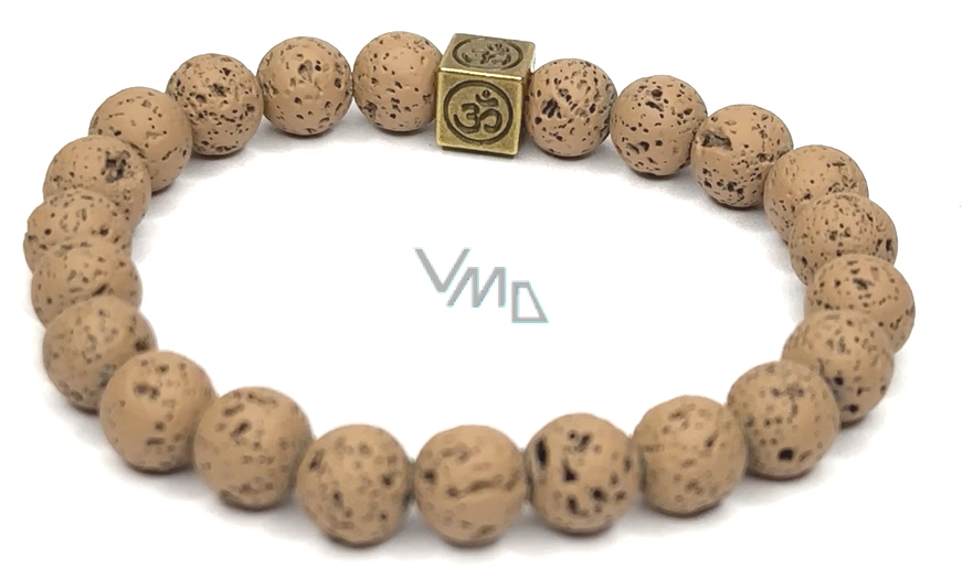 Lava hellbraun mit königlichem Mantra Om, Armband elastischer Naturstein, Kugel 8 mm / 16-17 cm, geboren aus den vier Elementen