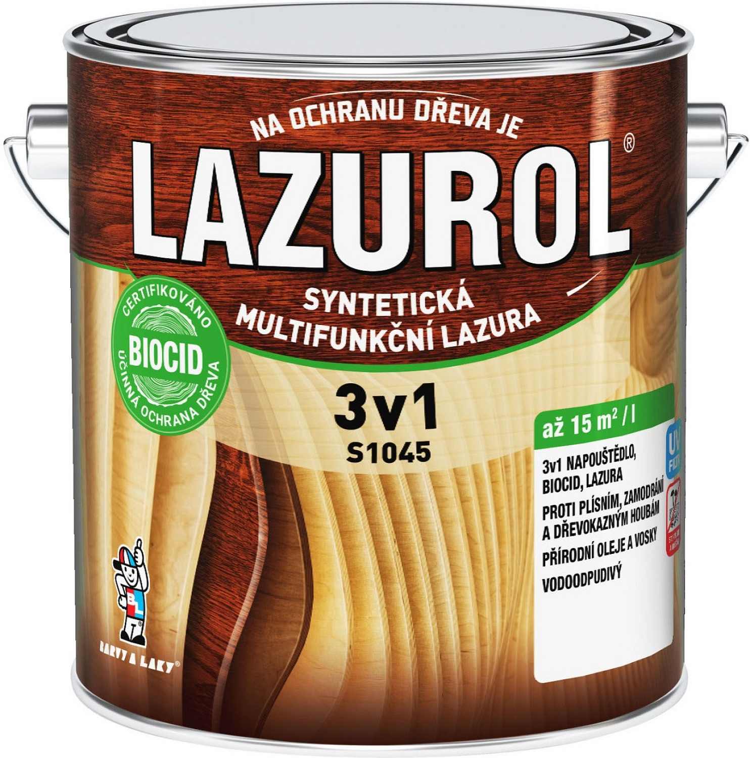 LAZUROL 3v1 S1045 ist eine synthetische multifunktionale Holzlasur mit dreifachem Schutz – gegen holzzerstörende Pilze, Schimmel und UV-Strahlung. Sie enthält Alkydharz, Biocide, Wachse, UV-Filter und natürliche Öle, die einen langanhaltenden und zuverlässigen Schutz des Holzes im Außenbereich gewährleisten.