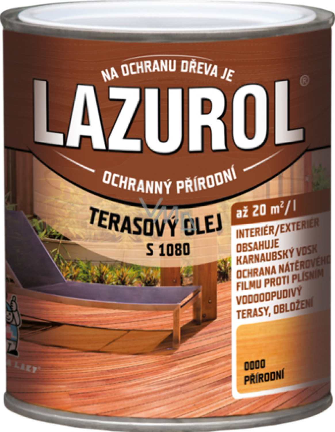 Lazurol S1080 terasový olej je určen k ochranným nátěrům všech typů dřeva včetně tropických dřevin, vystaveného povětrnostním vlivům i k nátěrům v interiérech.