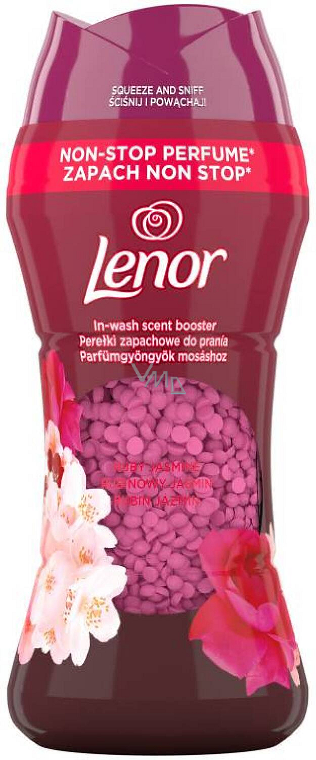 Verleihen Sie Ihrer Wäsche einen luxuriösen und langanhaltenden Duft mit Lenor Ruby Jasmine Duftperlen 195 g – für jeden Tag ein Gefühl von Eleganz und Frische.