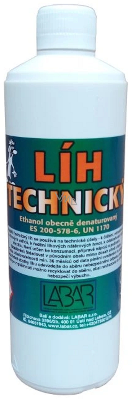 Technický líh se používá na technické účely - k čištění, odmašťování, do lihových vařičů, k ředění lihových nátěrových hmot, k odstraňování skvrn z textilu.
