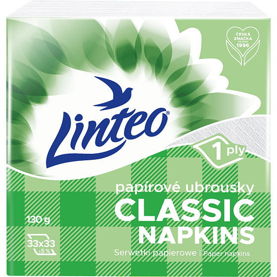 Papierservietten Linteo Classic sind einlagige Papierservietten aus 100% Zellstoff mit den Maßen 33 × 33 cm. Sie sind für vielseitige Anwendungen geeignet. Diese Servietten wiegen 130 g, die Verpackung enthält 100 Stück. Sie werden im Haushalt nicht nur zum Abwischen des Mundes, für das Verpacken von Snacks, sondern auch als Dekoration verwendet.