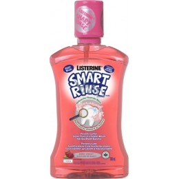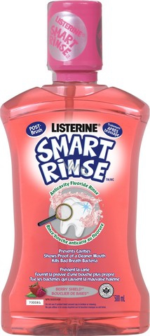 Ústní voda Listerine Smart Rins Mild Berry s přidaným fluoridem pomáhá chránit zuby Vašeho dítěte před zubním kazem při používání dvakrát denně po vyčištění zubů kartáčkem.