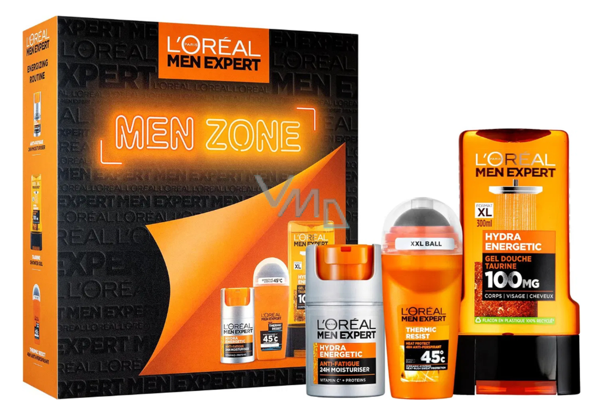 Loreal Men Expert Zone Hydra Energetic Duschgel mit Taurin 300 ml + Thermic Resist Antitranspirant Roll-on 50 ml + Hydra Energetic Feuchtigkeitscreme 50 ml, Pflegeset für Männer