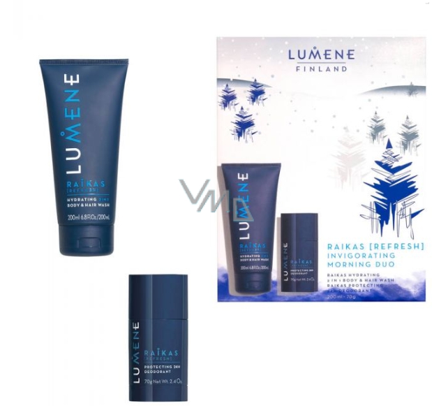 Lumene Raikas Hydrating 2in1 feuchtigkeitsspendendes Shampoo und Reinigungsgel für Männer 200 ml + Deo-Stick für Männer 70 g, Kosmetikset