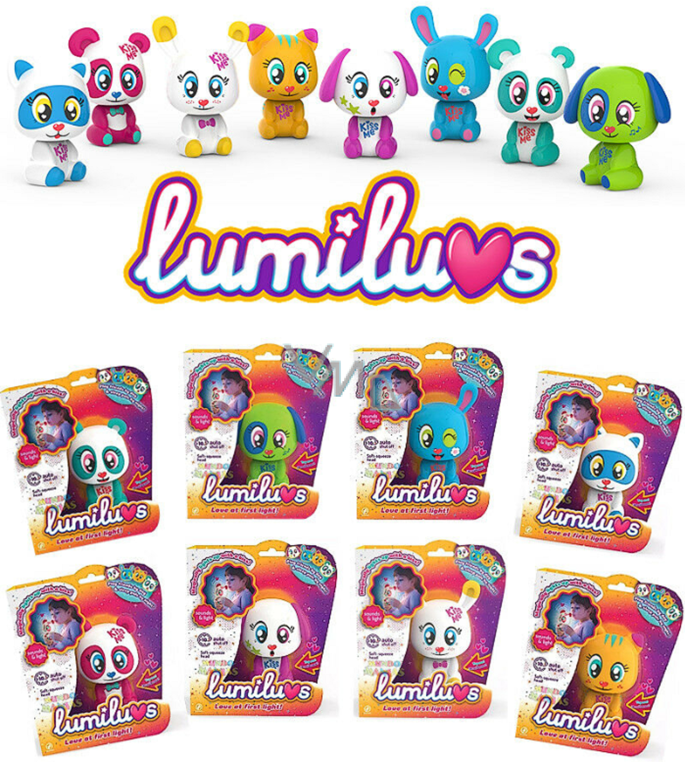 Zvířátko Lumiluvs svítí a brblá po fouknutí na bříško a pusince.
