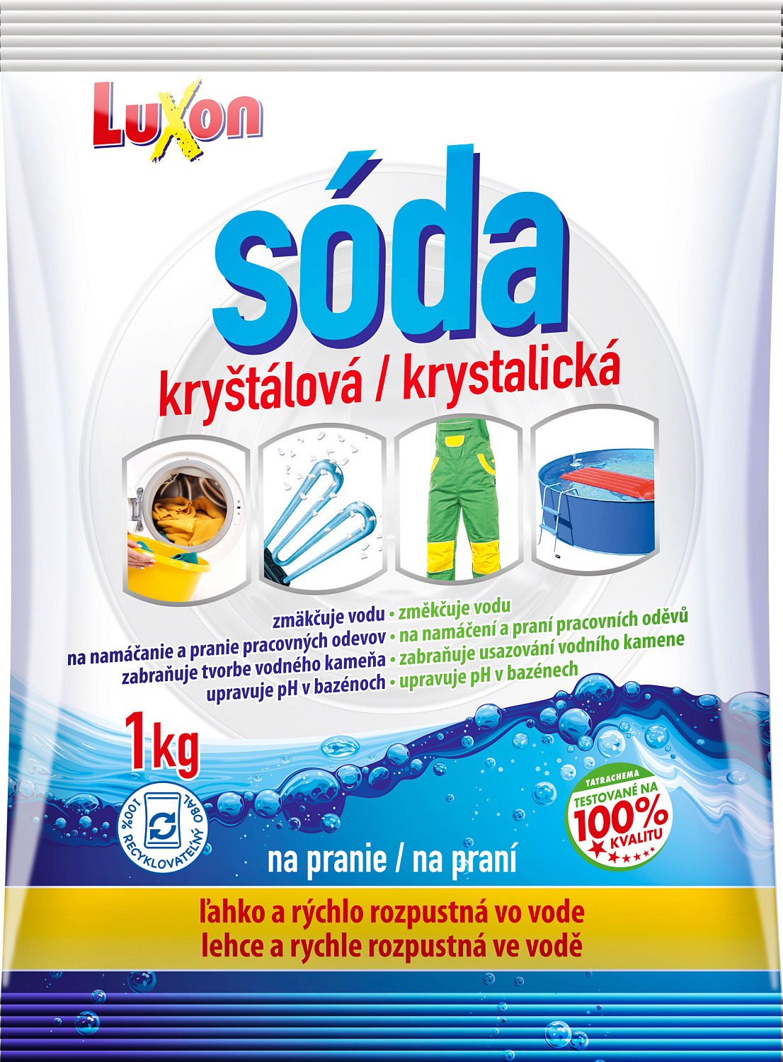 Tatrachema Luxon Soda ist ein hochlösliches Mittel zur Wasserenthärtung und verhindert die Ablagerung von Kalk. Soda findet auch Anwendung beim Spülen von Bier- oder fetthaltigen Rohren. Soda bindet Magnesium- und Calciumionen zur Bildung der entsprechenden unlöslichen Carbonate.