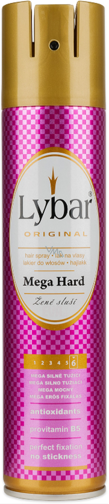 Lybar lak Mega Hard má nejsilnější tužicí účinek z celé řady laků značky Lybar. Lak je určen pro perfektní fixaci moderních účesů, kromě maximálního stupně natužení poskytuje i 24 hodinový stylingový efekt, ochranu vlasů proti UV záření a péči o kondici vlasů díky obsaženému vitamínovému komplexu. Formulace laku je velmi kvalitní, fixačními účinky převyšuje konkurenční produkty. Vlasy jsou po aplikaci lesklé, dokonale fixované.