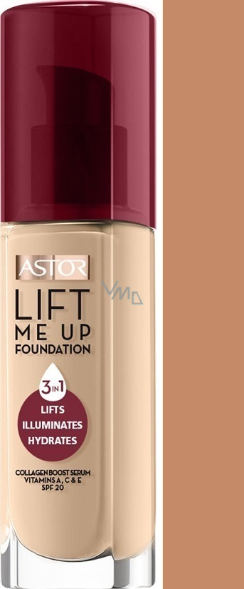 Astor splní Váš sen o mladší pleti! Představujeme make-up s lehkou texturou obohacenou o Kolagenové Sérum. Složení navíc obsahuje trio vitamínů C, A a E. SPF 15 se stará o ochranu Vaší pleti proti UVA/UVB záření. Jednoduše make-up, který nejen kryje, ale také pečuje o Vaši pleť.