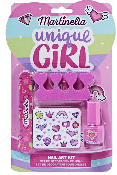 Martinelia Unique Girl Nagellack 4 ml + Nagelfeile + Nagelaufkleber + Fingertrenner, Kosmetikset für Kinder