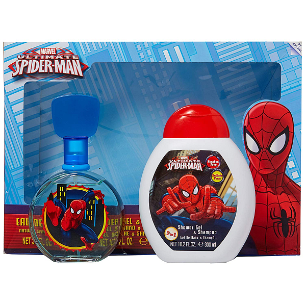 Toaletní voda a sprchový gel 2v1 Marvel Ultimate Spiderman s komiksovým hrdinou pro malé i velké. Jemná vůně Marvel Spiderman pro nová dobrodružství.