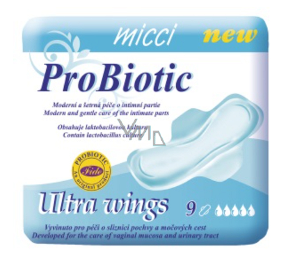 - unikátní kombinace dámské hygienické vložky a probiotik. Vložky obsahují čistou probiotickou kulturu Lactobacillus acidophilus