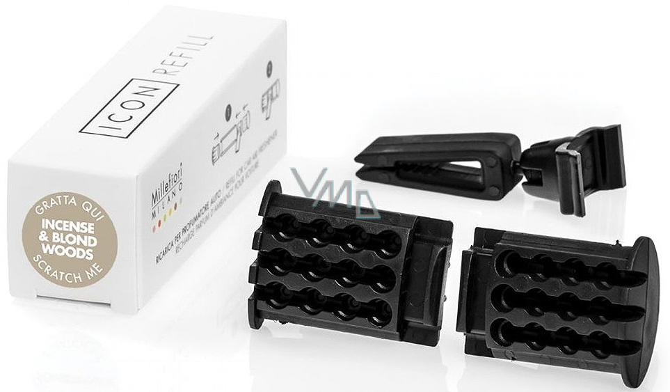 Vůně do auta s italským stylem. Balení obsahuje 1 ks parfémované náplně a náhradní klip pro uchycení na ventilaci. Náhradní náplň je univerzálně použitelná pro pouzdra Millefiori ICON v jakémkoli designu.