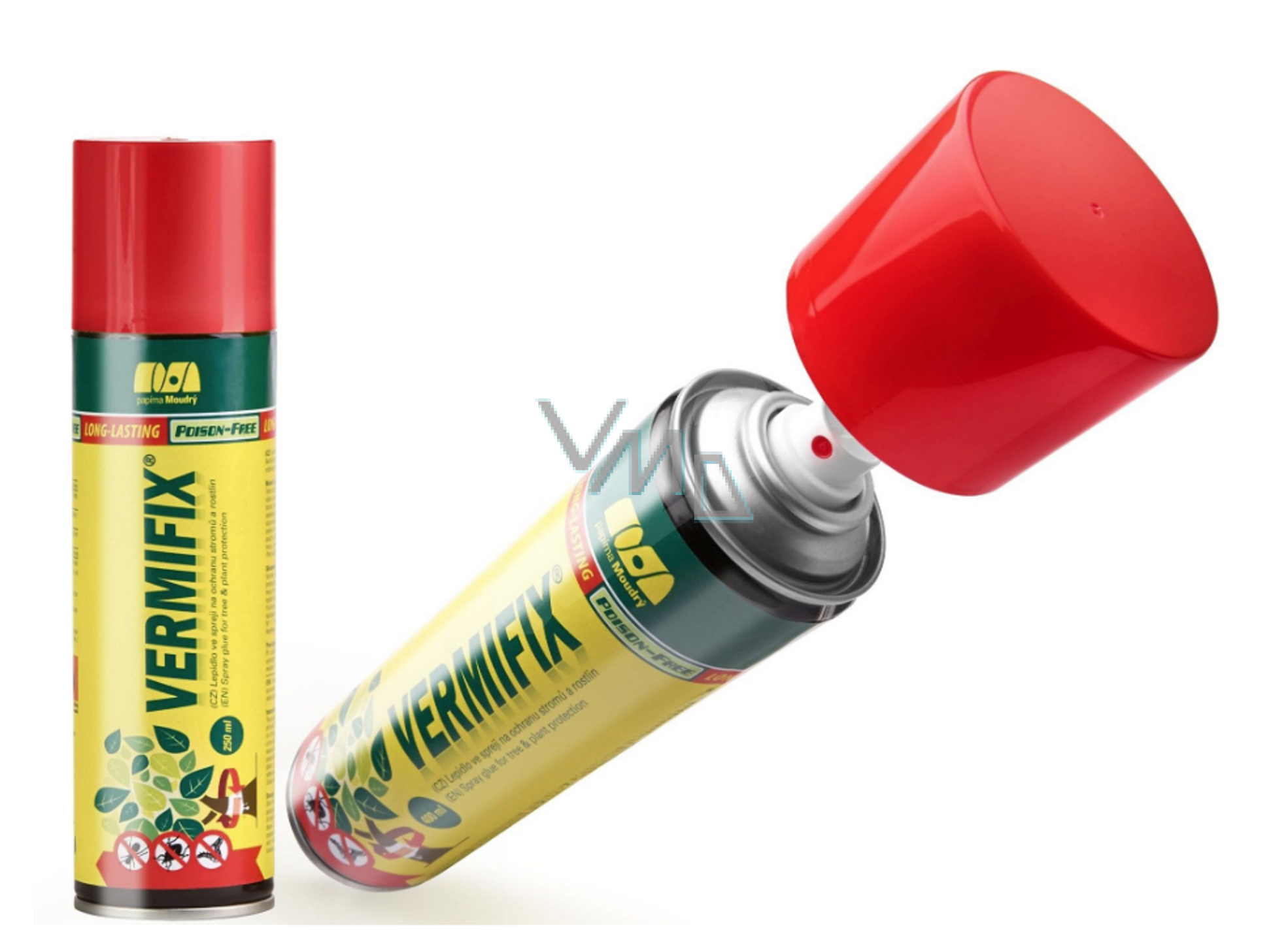 Das Vermifix Spray von Papírna Weiser schützt Bäume vor kriechenden Schädlingen, die in die Baumkronen eindringen.