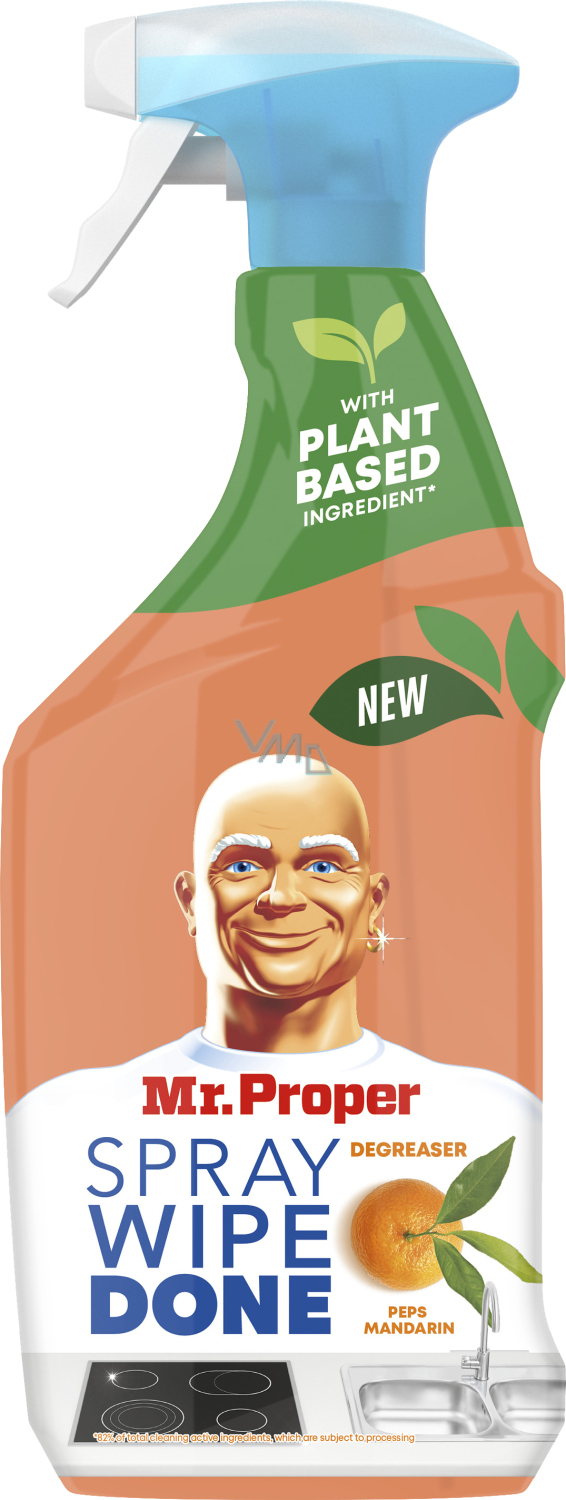 Der Mr. Proper Wipe Done Spray mit Mandarinen-Duft ist der ideale Partner für die Reinigung von Oberflächen in der Küche. Er hinterlässt einen frischen Zitrusduft von Mandarinen und entfernt mühelos Fett und Schmutz. Die Oberflächen bleiben nach der Behandlung duftend und glänzend, und dank der pflanzlichen Inhaltsstoffe ist er auch dort schonend, wo er mit Lebensmitteln in Berührung kommt.