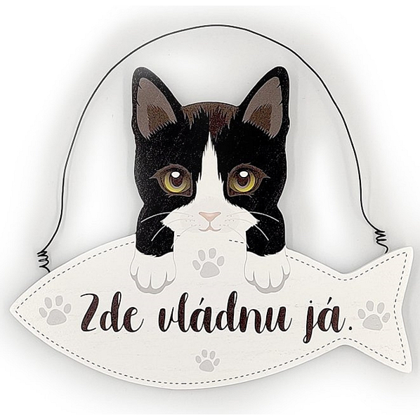 Vyhrazeno pro milovníky čtyřnohých mazlíčků! Patříte mezi ně? Udělejte si radost malou dřevěnou dekorací ve tvaru rybičky, kterou lze pověsit na dveře nebo na zeď. Cedulka s textem „Zde vládnu já“ dá všem na vědomí, kdo je v tomto domě pánem.