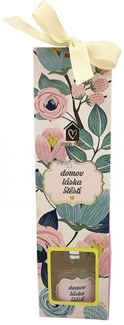 Elegantní difuzér "Domov, láska, štěstí" každou místnost nejen provoní, ale i ozdobí. Elegantní difuzér milým textem "Domov, láska, štěstí" je ozdobou každého interiéru. Bude jej nejen zdobit, ale svým aroma provoní celou místnost a navodí tak v domově příjemnou a svěží atmosféru. O to vše se postará dokonalá kombinace vůní grapefruitu a zázvoru.