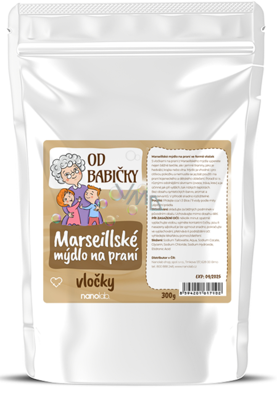 Marseillské mýdlové vločky jsou zcela biologicky odbouratelné, 100% přírodní, hypoalergenní - vyrobené z kokosového oleje.