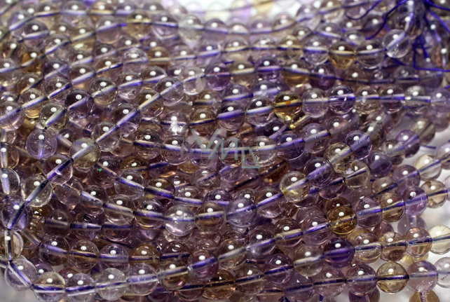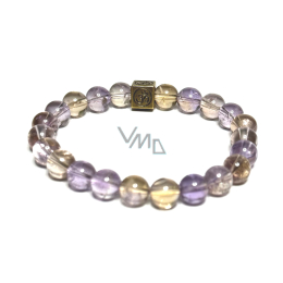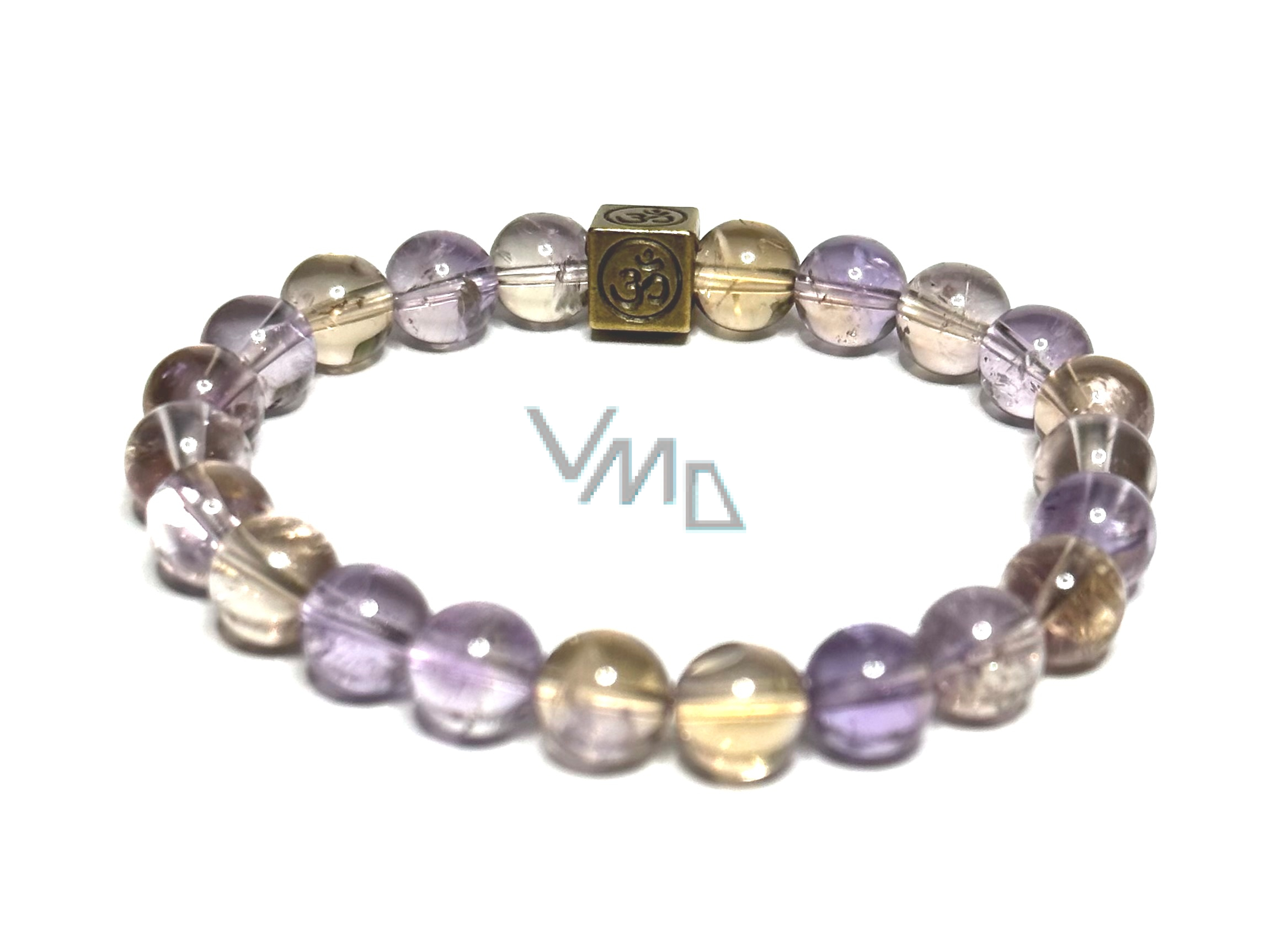 Ametrin mit Royal Mantra Om Armband elastischer Naturstein, Perle 8 mm / 16-17 cm, Energieverstärker