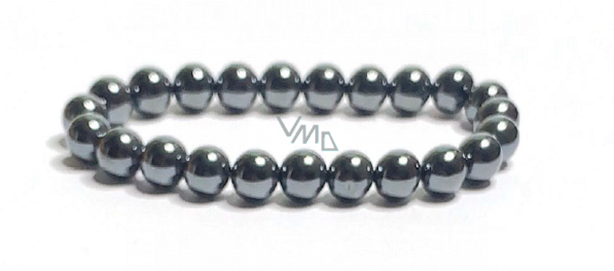 Hämatit-Armband elastischer Naturstein, Kugel 8 mm / 16 - 17 cm, gesunder Blutstein
